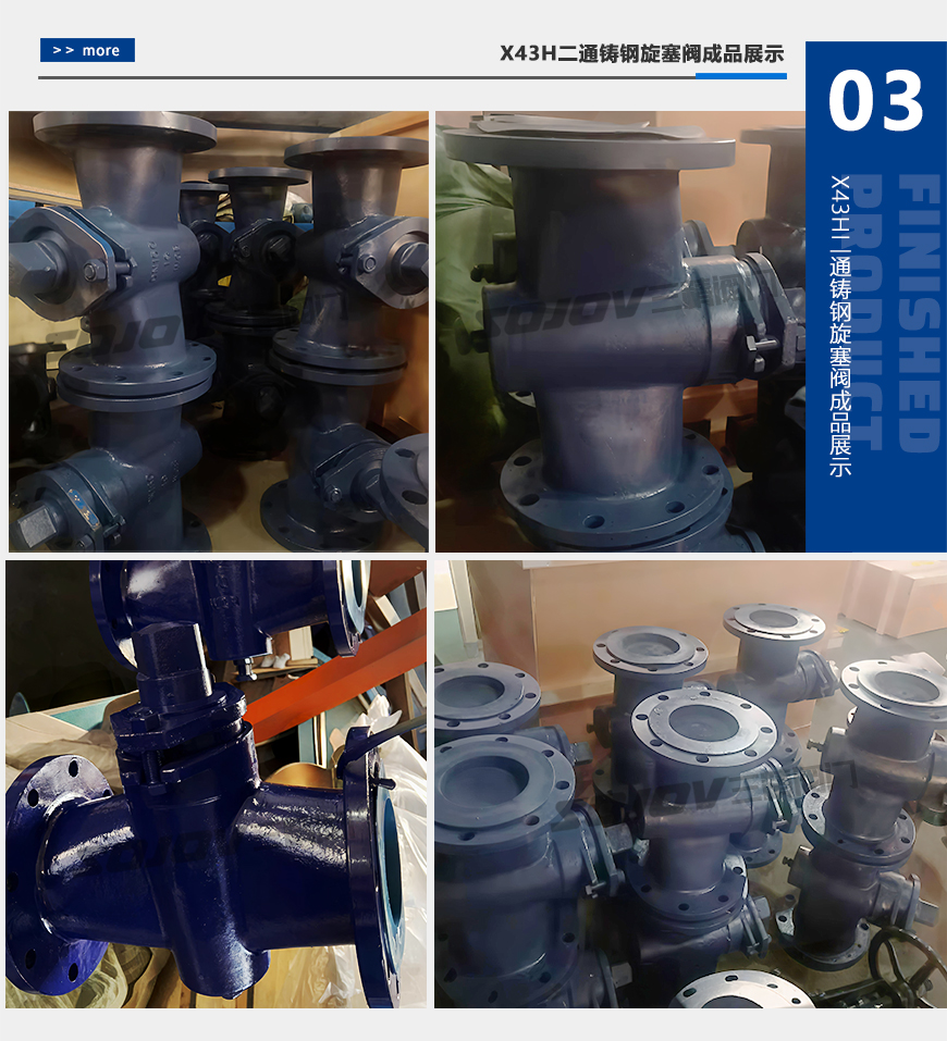 X43H二通鑄鋼旋塞閥是用帶通孔的旋塞做為啟閉件,通過旋塞的旋動實現(xiàn)關(guān)閉的閥門,具有密封性能好,使用壽命長,具有進出端同時密封的優(yōu)點。襯里旋塞基本類型有兩種:X44系列三通旋塞閥和X43系列三通旋塞閥。
