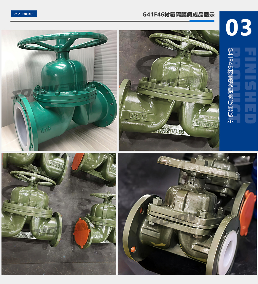 G41F46襯氟隔膜閥是一種特殊形式的具有截?cái)喙δ艿拈y門,在化工、制酸、制堿、冶煉、稀土、農(nóng)藥等行業(yè)生產(chǎn)系統(tǒng)中應(yīng)用較為廣泛。
