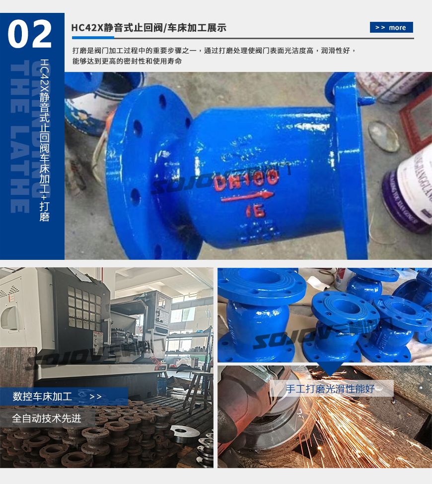 該閥由閥體、閥座、導(dǎo)流體、閥瓣、軸瓦及彈簧等零件組成。內(nèi)部流道采用流線型設(shè)計,壓力損失小,閥瓣啟閉行程很短,停泵時可快速關(guān)閉,防止巨大的水錘聲,形成靜音效果。該閥主要用于給水、排水、消防、暖通系統(tǒng),可安裝于水泵出口處,防止介質(zhì)倒流及水錘對泵的損壞。
